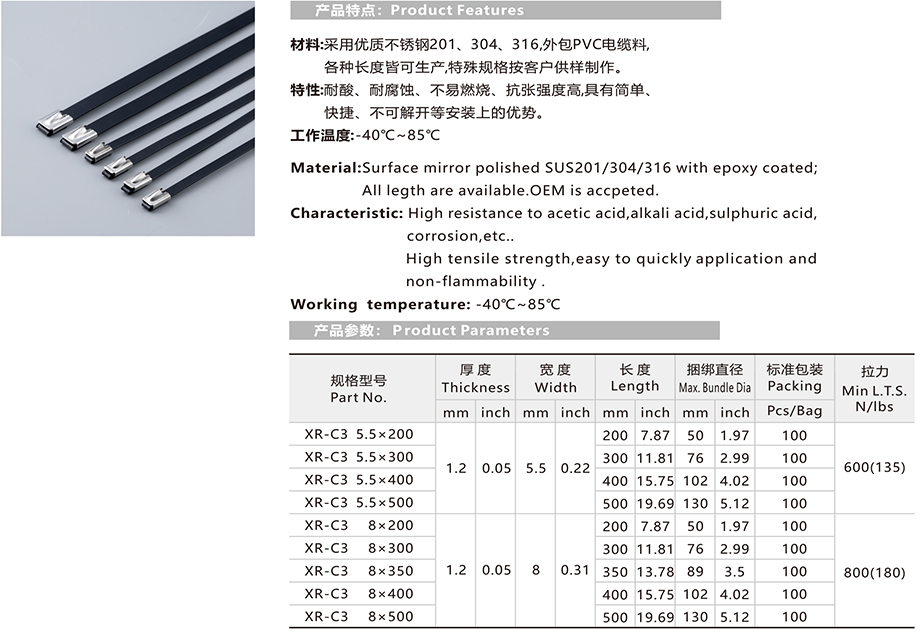 包塑不銹鋼扎帶-滾珠自鎖式